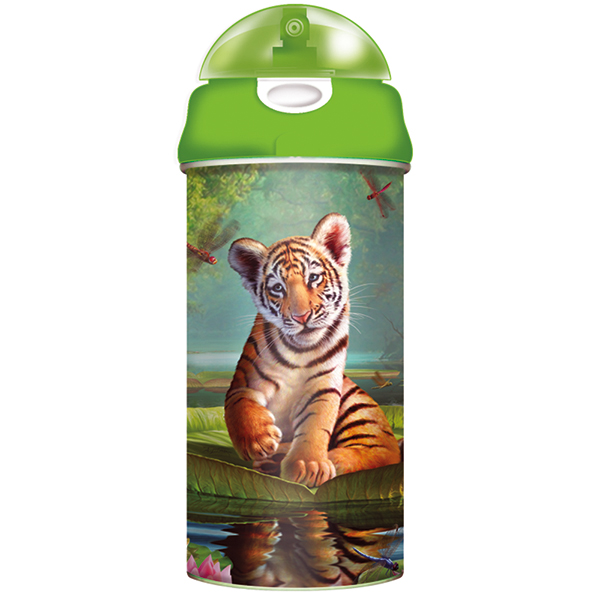Eine robuste Trinkflasche aus Kunststoff mit Strohdeckel und abnehmbarem Schultergurt. Mit lebendigen Farben und unglaublichem 3D Effekt. Höhe 20cm, Füllkapazität 600ml - perfekt für Kinder jeden Alters für Ausflüge in den Park, einen Tag im Freien oder zum einfachen Transportierten in der Lunchbox.