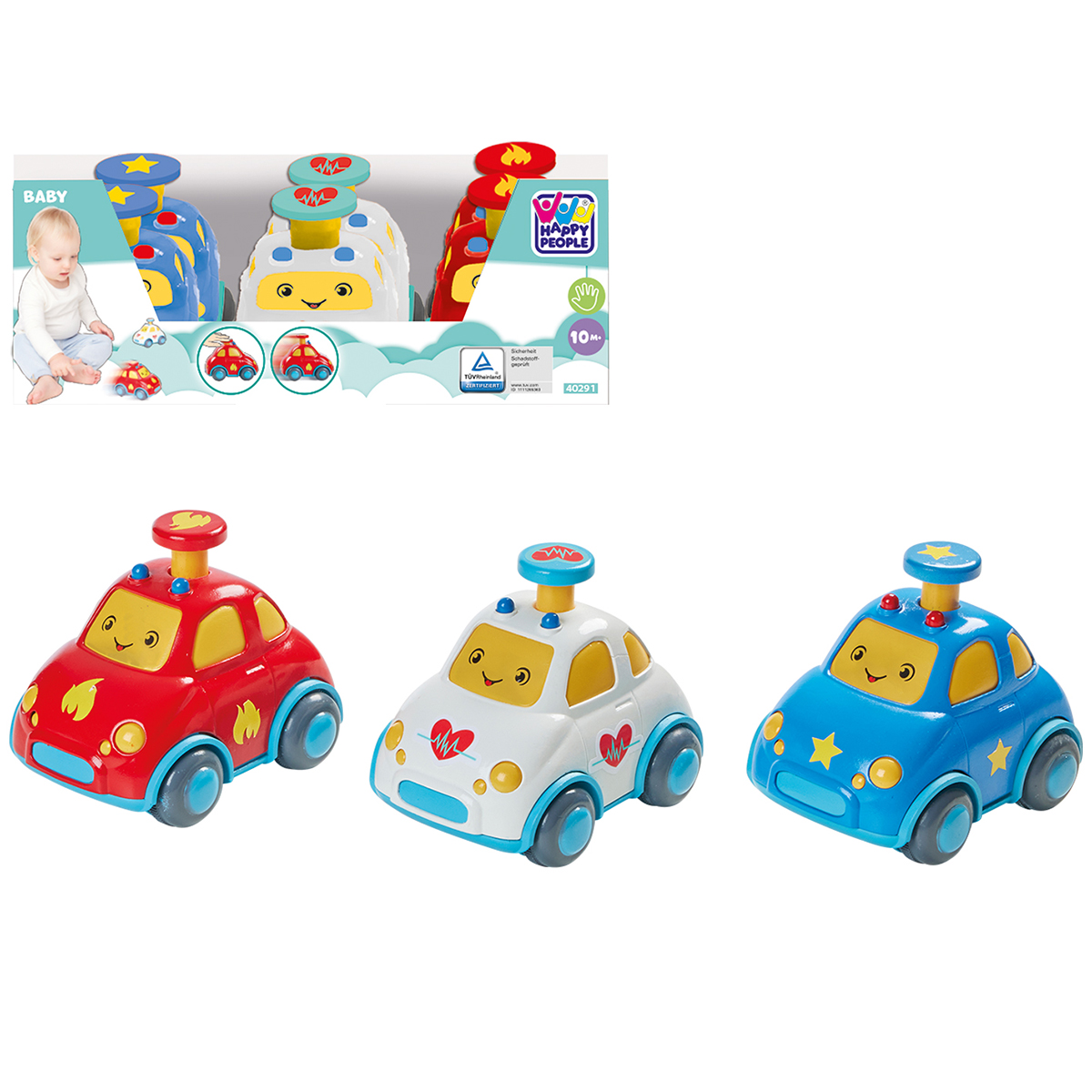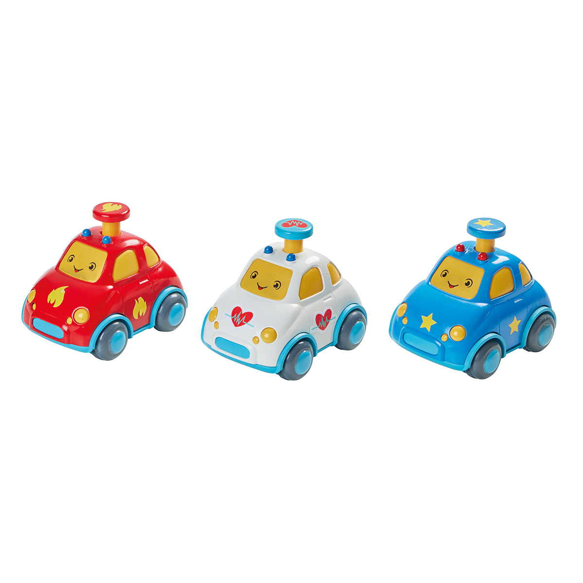 Baby press + go Autos, 3-fach assortiert Polizei, Rettungswagen und Feuerwehr.
