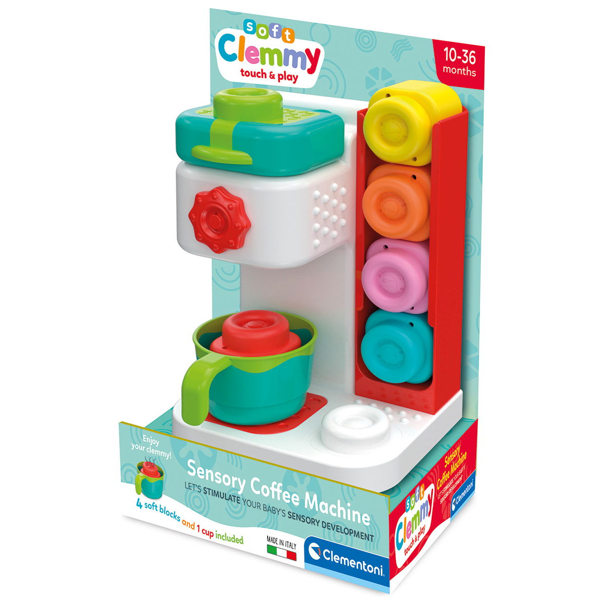 Clemmy - Kaffeeemaschine 4 weiche Blöcke und eine Tasse.