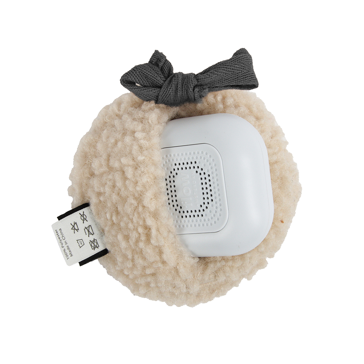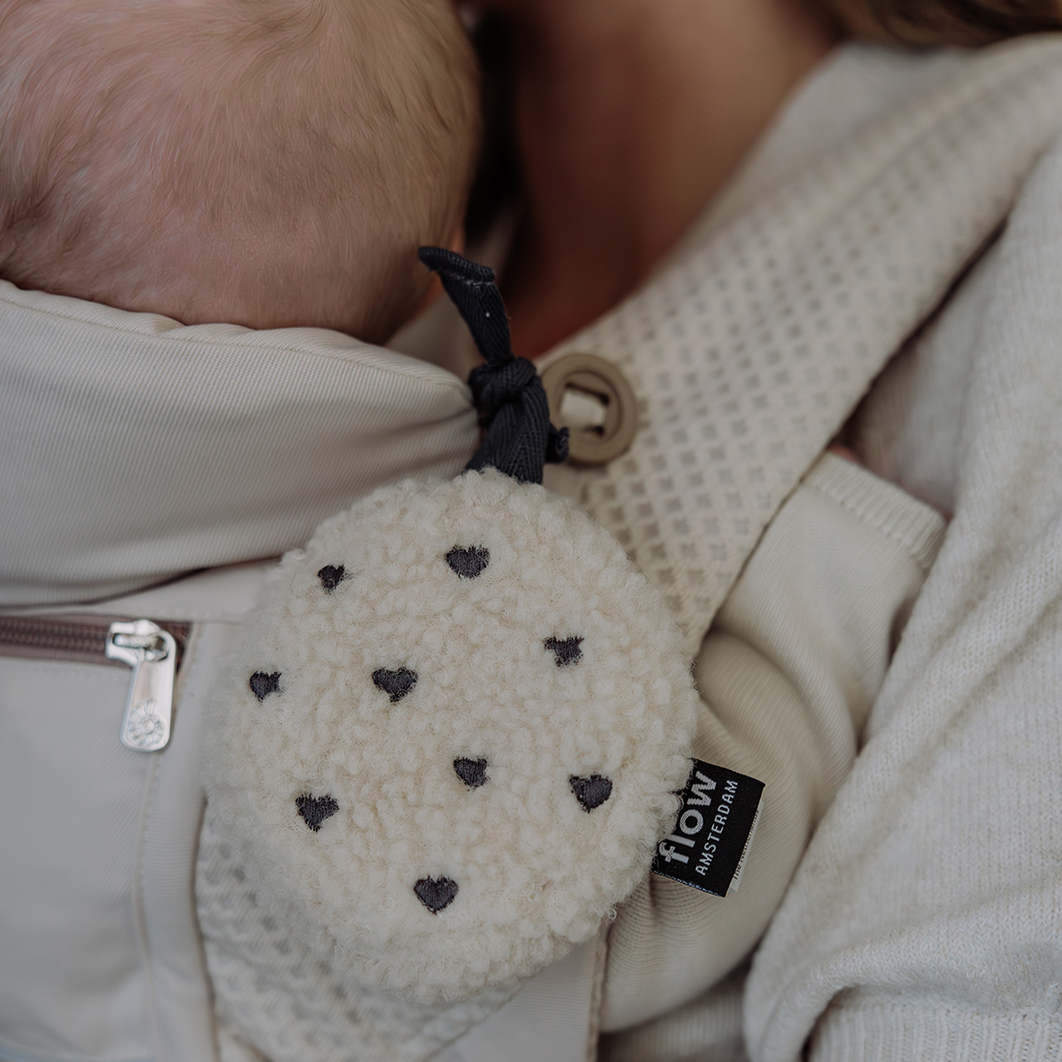 Der Comforter on the go ist eine kleinere Version, die Sie unterwegs mitnehmen können. Dieser Comforter mit Herzschlag gibt Ihrem Kind ein sicheres und beruhigendes Gefühl auf der Straße. Sie können den Comforter ganz einfach mit einem Band am Maxi Cosi oder Kinderwagen befestigen. Der Comfrorter wird mit einer Musikbox geliefert, die 2 Geräusche abspielt: Herzschlag und weißes Rauschen. Mit einem großen Knopf können Sie die Musikbox einschalten, die Lautstärke anpassen und zwischen den beiden Geräuschen umschalten. Da der Knopf extra groß ist, lässt sich die Musikbox auch leicht bedienen.