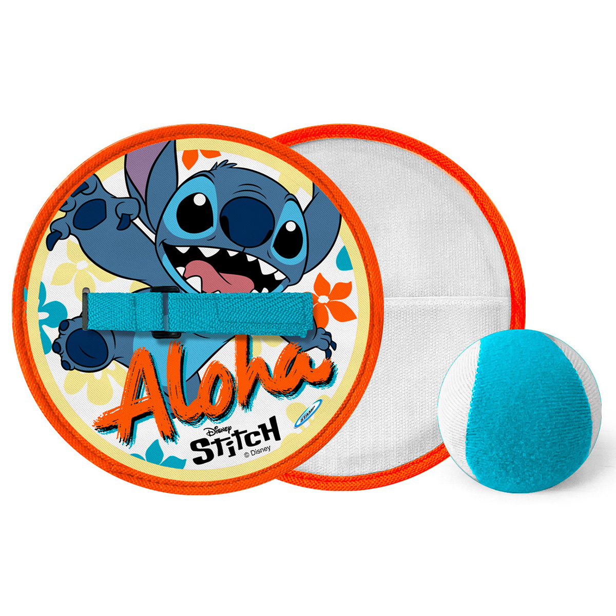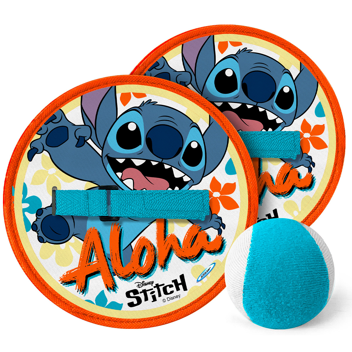 Zwei Klett-Fangflächen und ein weicher Ball machen dieses Set zu einem tollen Reaktions- und Geschicklichkeitsspiel im niedlichen Stitch-Design.
