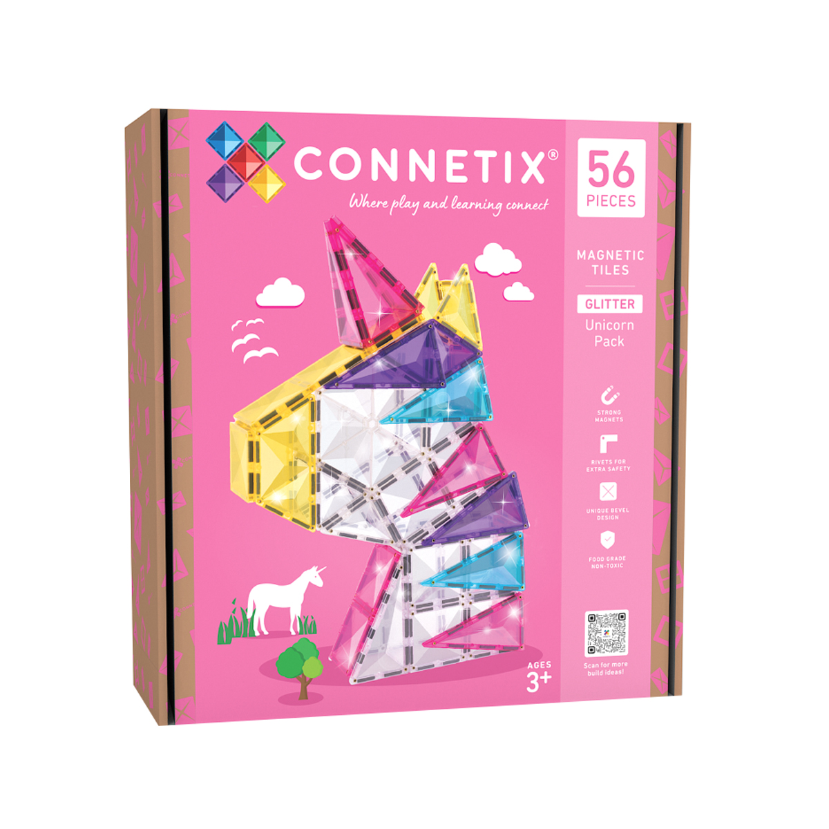 Dieses Set ist perfekt für Einhorn-Fans, Fantasie-Träumer und kreative Entdecker und bietet unzählige Spielmöglichkeiten. Es enthält glitzernde Magnetbausteine ??in strahlend klaren und leuchtenden Farben wie Pink, Gelb, Türkis und Lila sowie eine sorgfältig ausgewählte Palette an Formen wie Quadrate, Sechsecke, Rechtecke, Dreiecke und Trapeze, mit denen du deine funkelnden Einhorn-Kreationen zum Leben erwecken kannst! Jeder Baustein glitzert in allen Farben und hat ein einzigartiges abgeschrägtes Design, das jedes Bauwerk aufwertet und spielerisch MINT-Lernmöglichkeiten eröffnet. Von faszinierenden Lichtbrechungen über Einhorn-Geburtstagsdeko bis hin zum Bau von Burgen, majestätischen Tieren, transparenten Schneekugeln und vielem mehr! Beobachte, wie sich das Spiel von Kindern von einfachen 2D-Formen zu interaktiven Designs entwickelt. Dieses Konstruktionsspielzeug regt zu freiem Spiel und Lernen in allen Phasen der Kindheit und darüber hinaus an.