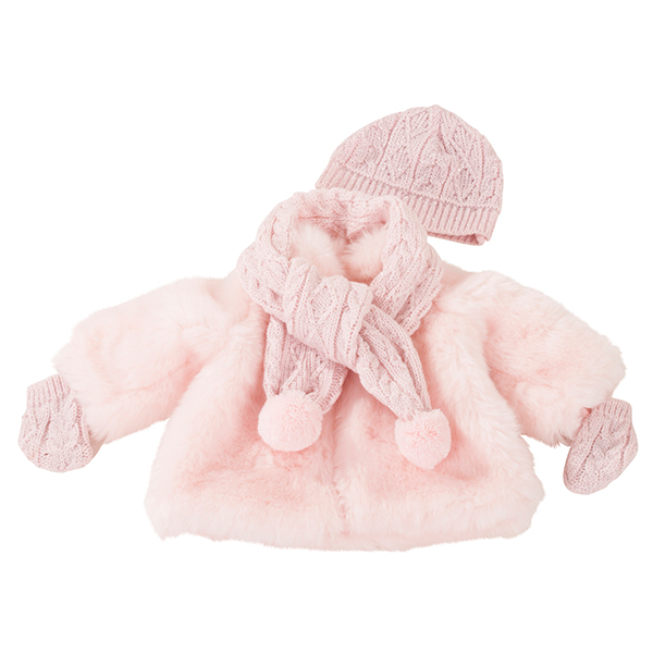 Wunderschönes Winter-Set bestehend aus Mantel, Mütze, Schal und Handschuhen für Puppen der Grösse 42-50 cm