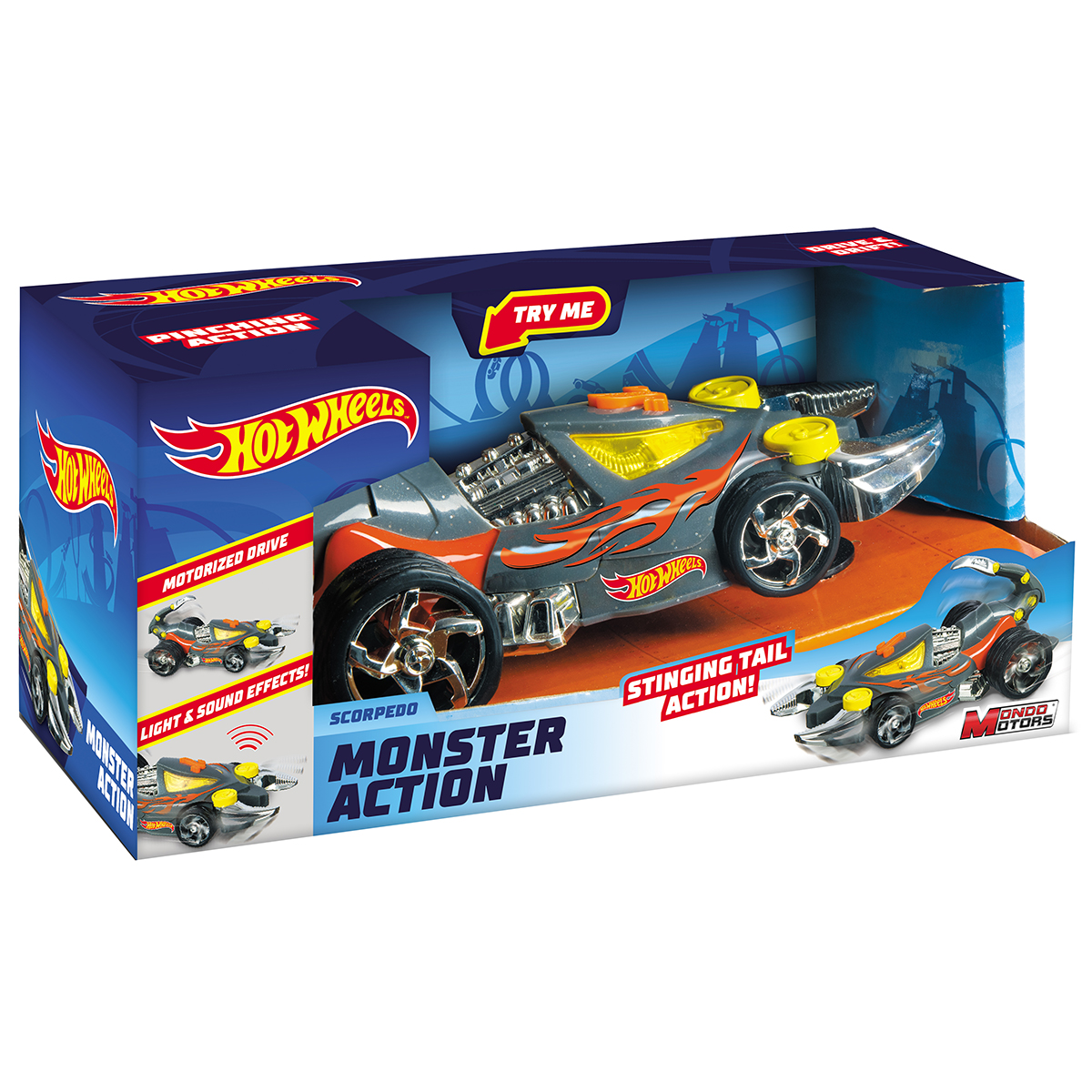 Hot Wheels Fahrzeug 22cm Scorpedo mit Licht und Sound, inkl. 3x AAA Batterien.