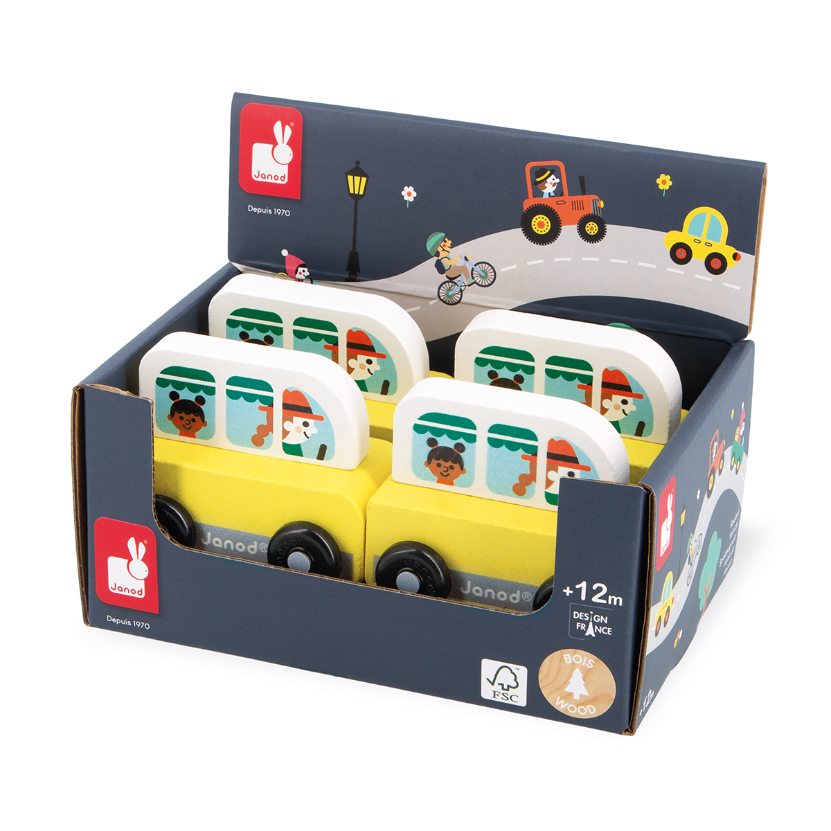 Der Familienurlaub hat begonnen! Alle bitte einsteigen und auf geht`s zum See mit dem Kleinbus! Mit diesem Kleinbus aus Holz erwarten die Kids eine Fülle von fantasievollen Abenteuern. Dank seiner Form ist dieser Kleinbus für Kleinkinder leicht zu handhaben. Spielzeug aus Holz für Kinder ab 12 Monaten. Zusammen mit deiner Matte und dem hübschen Würfel-Köfferchen aus dem Janod-Sortiment ergänzt dieses rollende Gefährt deine Welt perfekt.