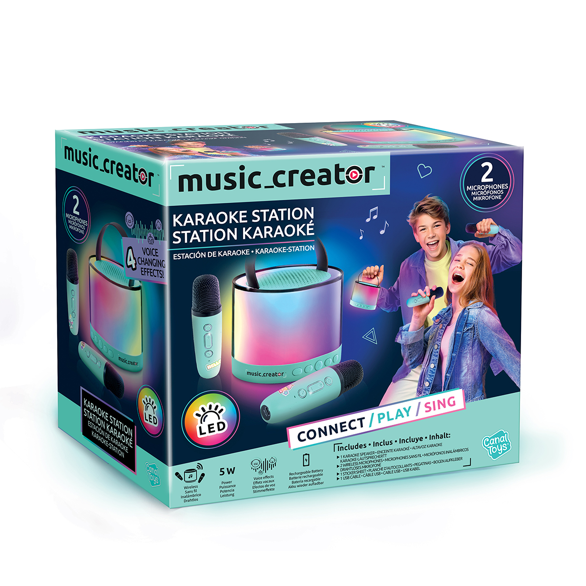 Singen Sie wie ein Star mit diesem Mini-Bluetooth-Karaoke-Lautsprecher! Mit seiner hochwertigen Klangqualität und den Lichteffekten können Sie Ihre Musik ganz einfach abspielen und solo oder im Duett mit den 2 mitgelieferten kabellosen Mikrofonen singen! Die Mikrofone verfügen über professionelle Stimmverzerrungseffekte!
