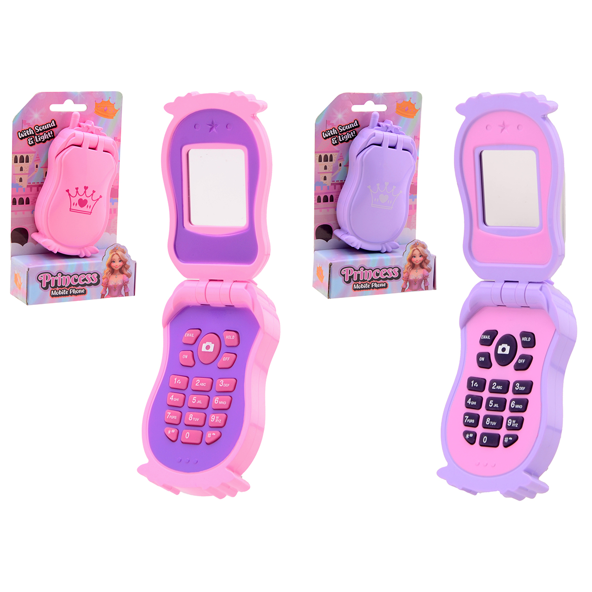 Mobile Handy 2-fach assortiert macht Geräusche beim Drücken der Tasten.