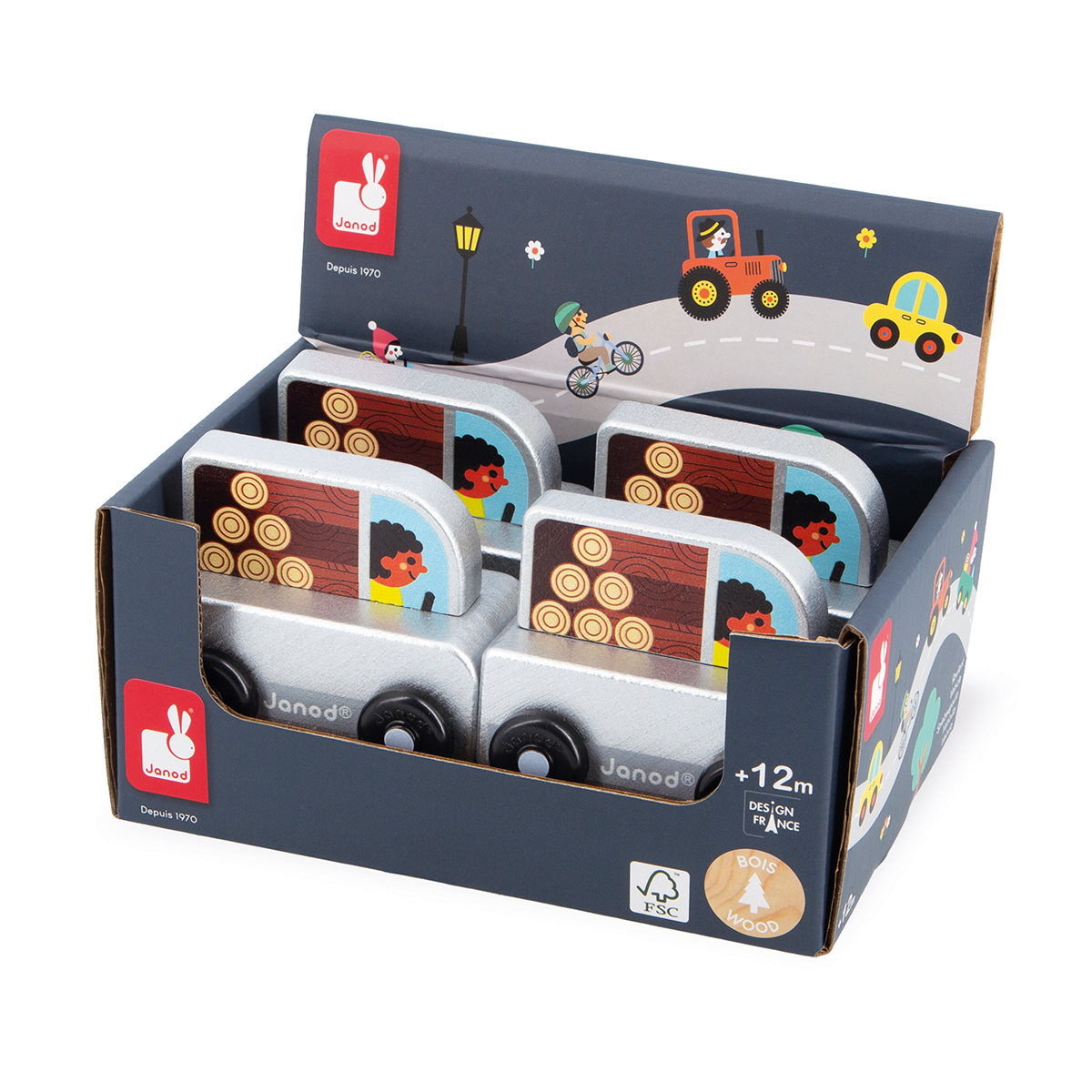 Nach einem harten Tag kehrt der Holzfäller mit dem Anhänger voller Holz nach Hause zurück! Mit diesem Pick-up aus Holz können die Kids stundenlang spielen und sich viele Geschichten ausdenken. Dank seiner Form ist der Pick-up für Kleinkinder leicht zu handhaben. Spielzeug aus Holz für Kinder ab 12 Monaten. Zusammen mit deiner Matte und dem hübschen Würfel-Köfferchen aus dem Janod-Sortiment ergänzt dieses rollende Gefährt deine Welt perfekt.