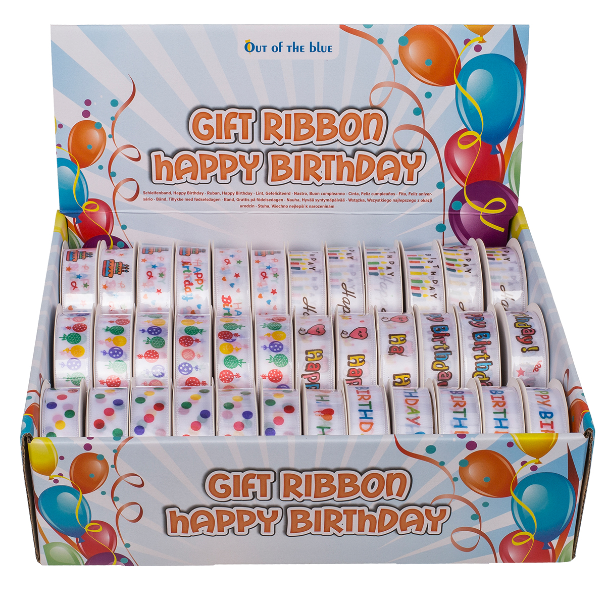 Schleifenband Happy Birthday 6-fach sortiert, 2 cm x 2 m 100% Polyester