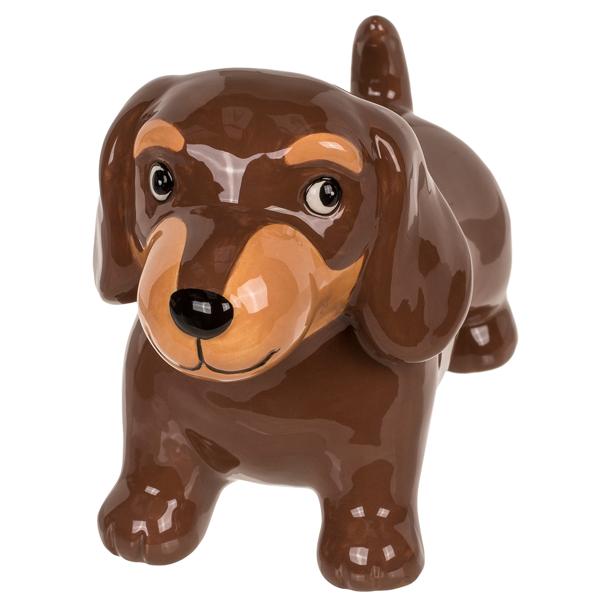 Spardose ohne Schlüssel, Dackel, aus Keramik, mit Stopper, 18 x 13 cm, in Braunbox