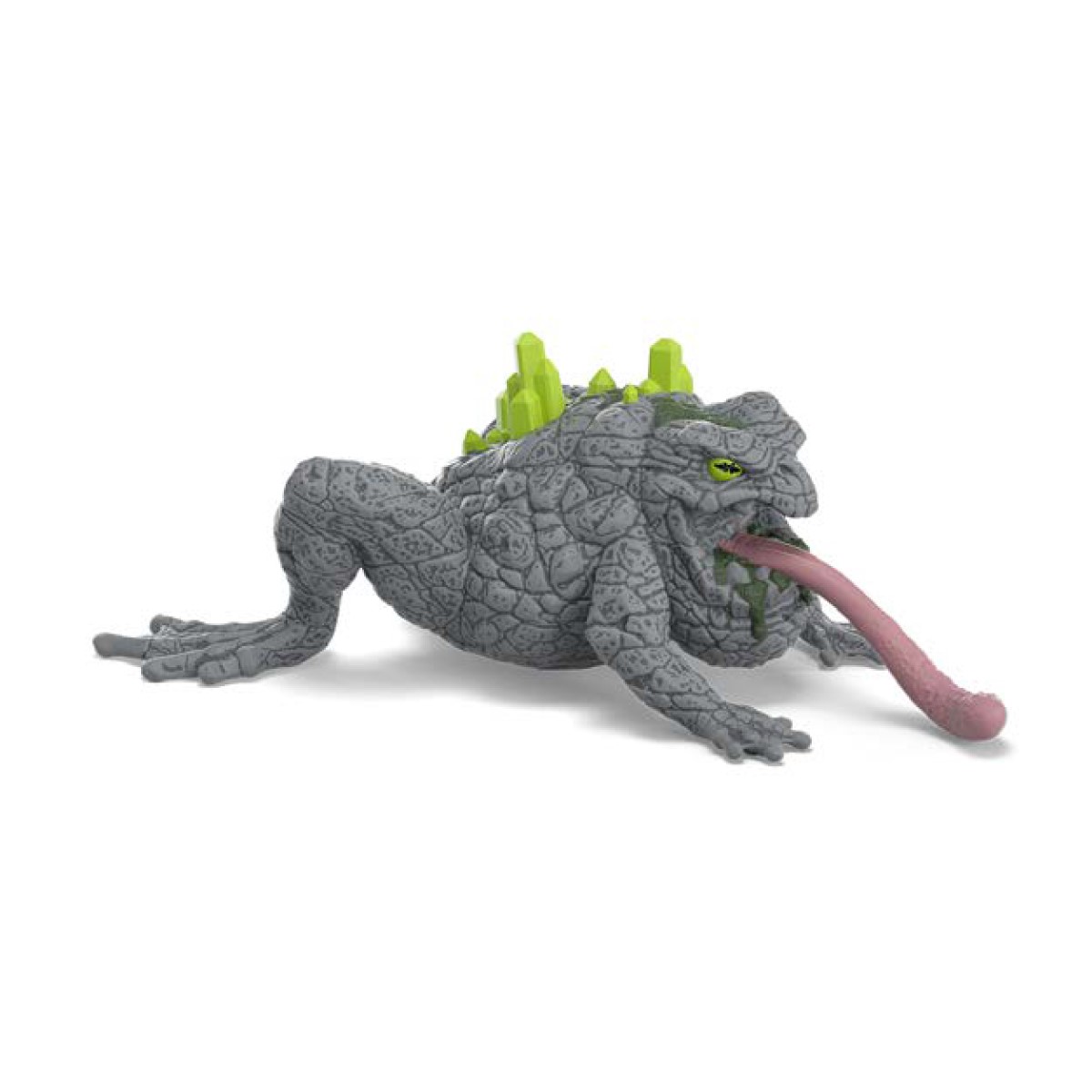 Die Steinkröte sieht giftig aus, wie sie da zwischen den Felsen der Steinwelt kauert. Mit der grauen Echsenhaut ist sie zwischen dem Gestein kaum zu sehen. Nur die spitzen, giftgrünen Kristalle funkeln gefährlich auf ihrem Rücken. Mit ihren grün schillernden Augen starrt sie Eindringlinge fies an und fährt dann plötzlich die klebrige Zunge aus. Igitt!