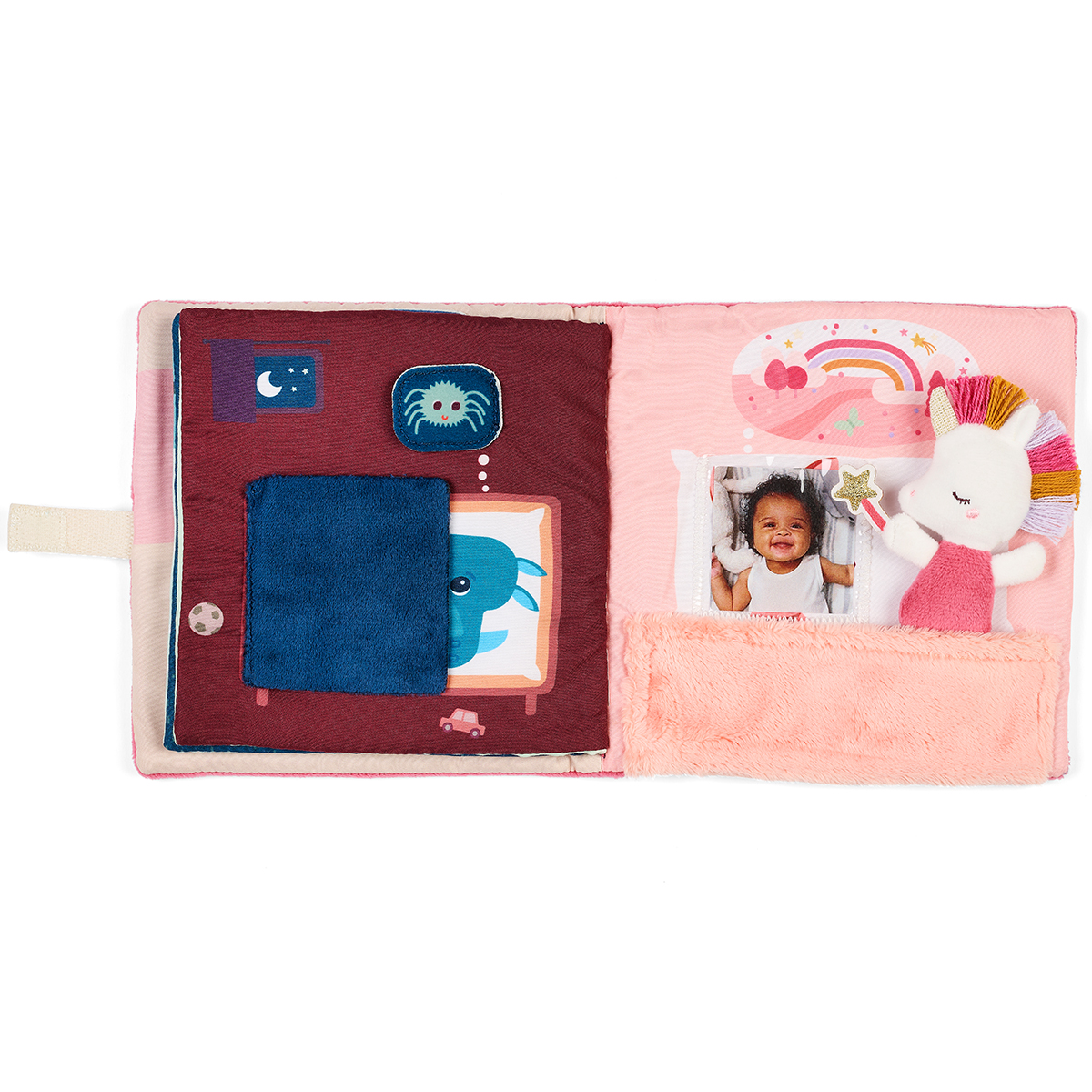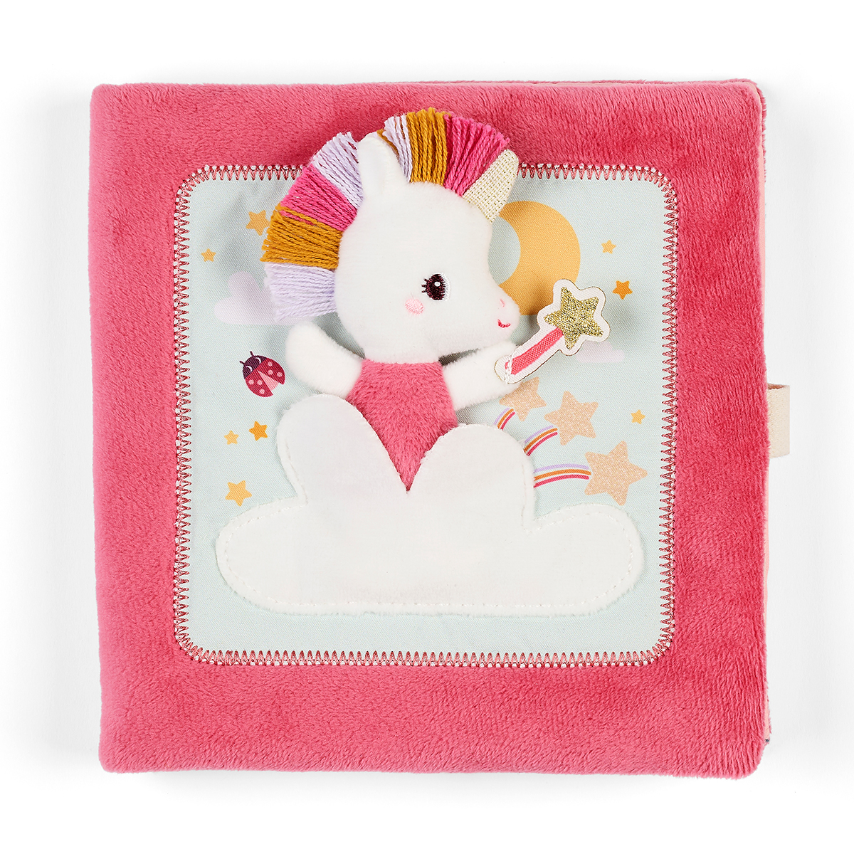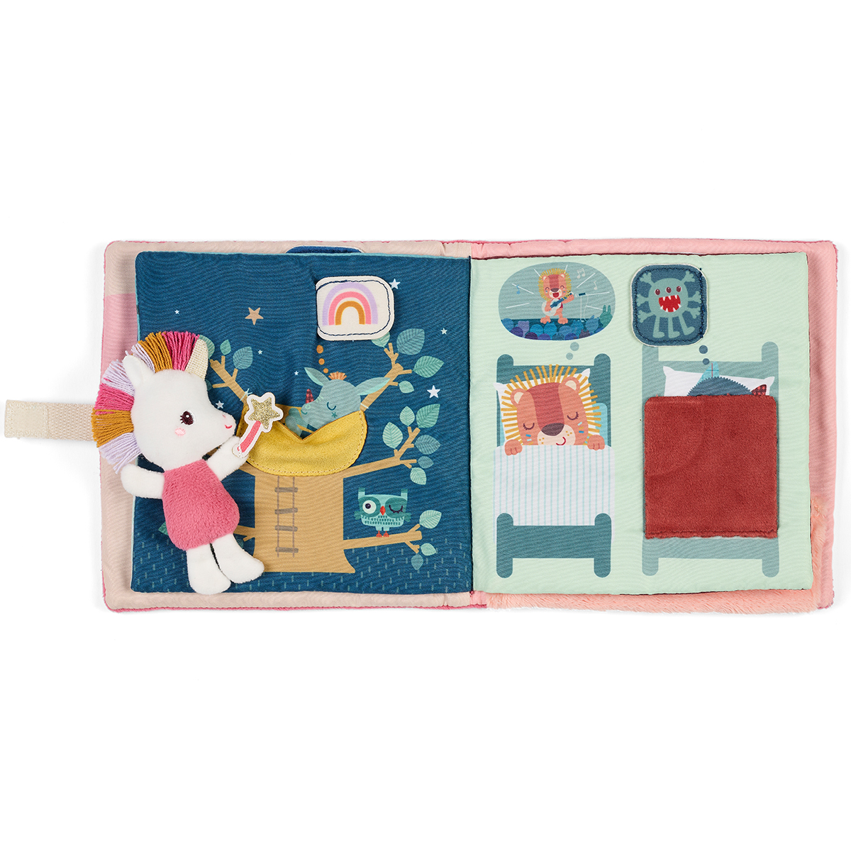 Ein weiches Stoff-Aktivitätenbuch, in dem Lena das Einhorn über den Schlaf ihrer Freunde wacht. Sie vertreibt Albträume und verwandelt sie in süße Träume. Perfekt für einen liebevollen Moment zwischen Eltern und Kind vor dem Einschlafen.