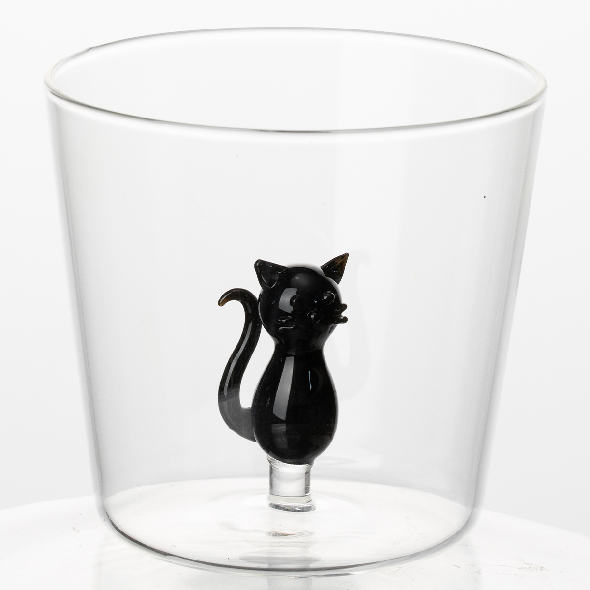 Dieses Trinkglas wird aus hochwertigem Borosilikatglas gefertigt, das für seine Klarheit, Festigkeit und Temperaturwechselbeständigkeit bekannt ist. Dadurch ist das Glas ebenso langlebig wie schön. Doch der wahre Charme liegt im Inneren. Eingebettet in die transparente Form findet sich eine verspielte Glasskulptur, welche sorgfältig von Hand geformt wurde, was bei jedem Schluck einen Hauch von Magie verleiht. Dieses Detail im Inneren verwandelt das Trinken in einen Moment stillen Genusses.