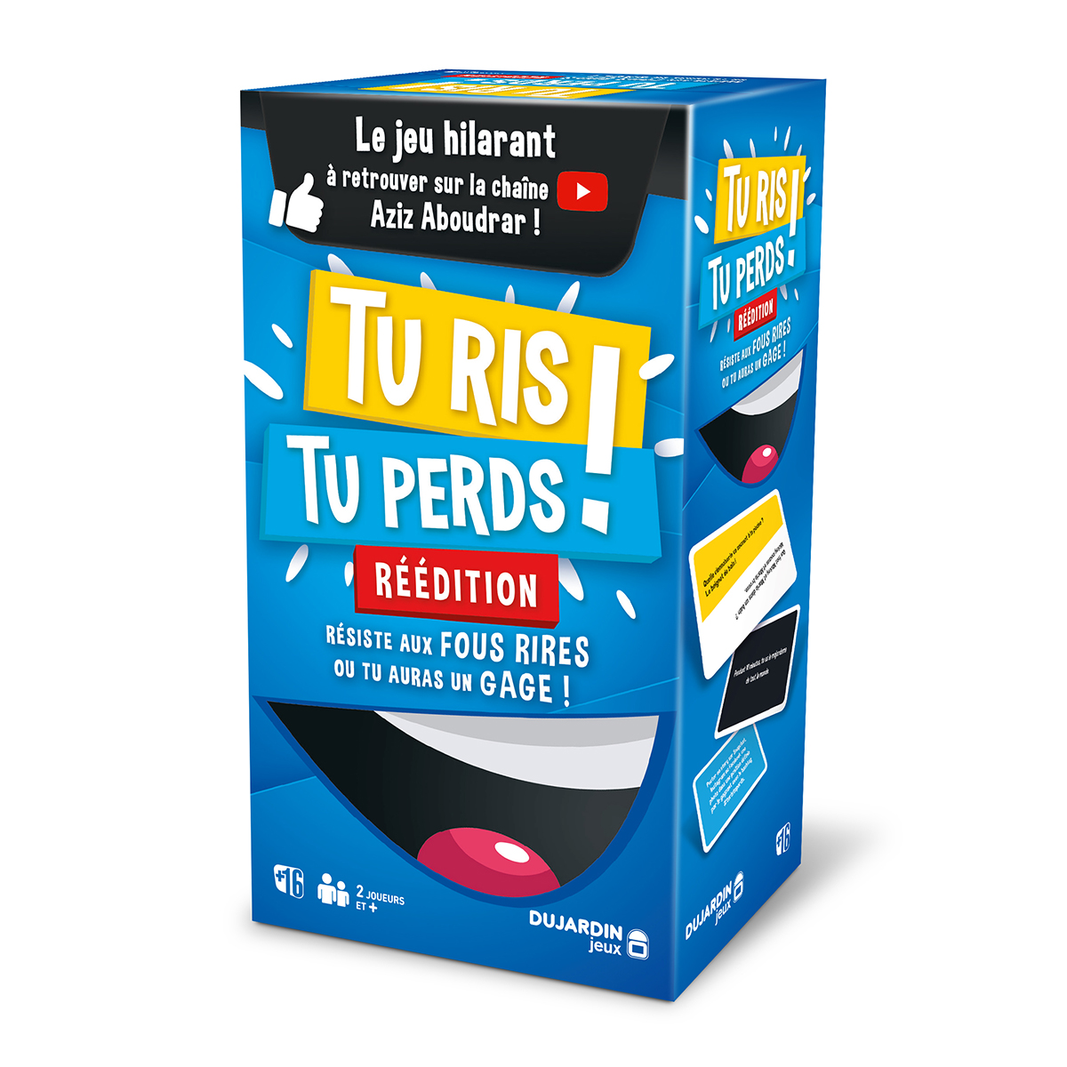 FRANZÖSISCH - Le jeu qui a fait le buzz sur la chaîne youtube d’Aziz Aboudrar. Deux équipes s'affrontent dans un duel de blagues pourries. Si tu ris, tu donnes des points à l’équipe adverse. Gare aux contraintes et aux gages, qui pimenteront la partie ! Sauras-tu garder ton sérieux? 300 cartes blagues,48 cartes contraintes,48 cartes gages,1 règle du jeu