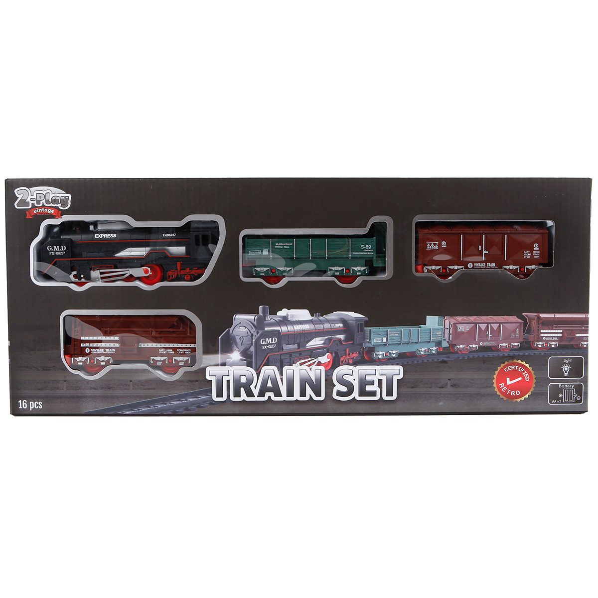 Lokomotivset mit Licht, 3 Anhängern und Schienen, 16 Teile, 45cm, exklusive 2x AA Batterien.