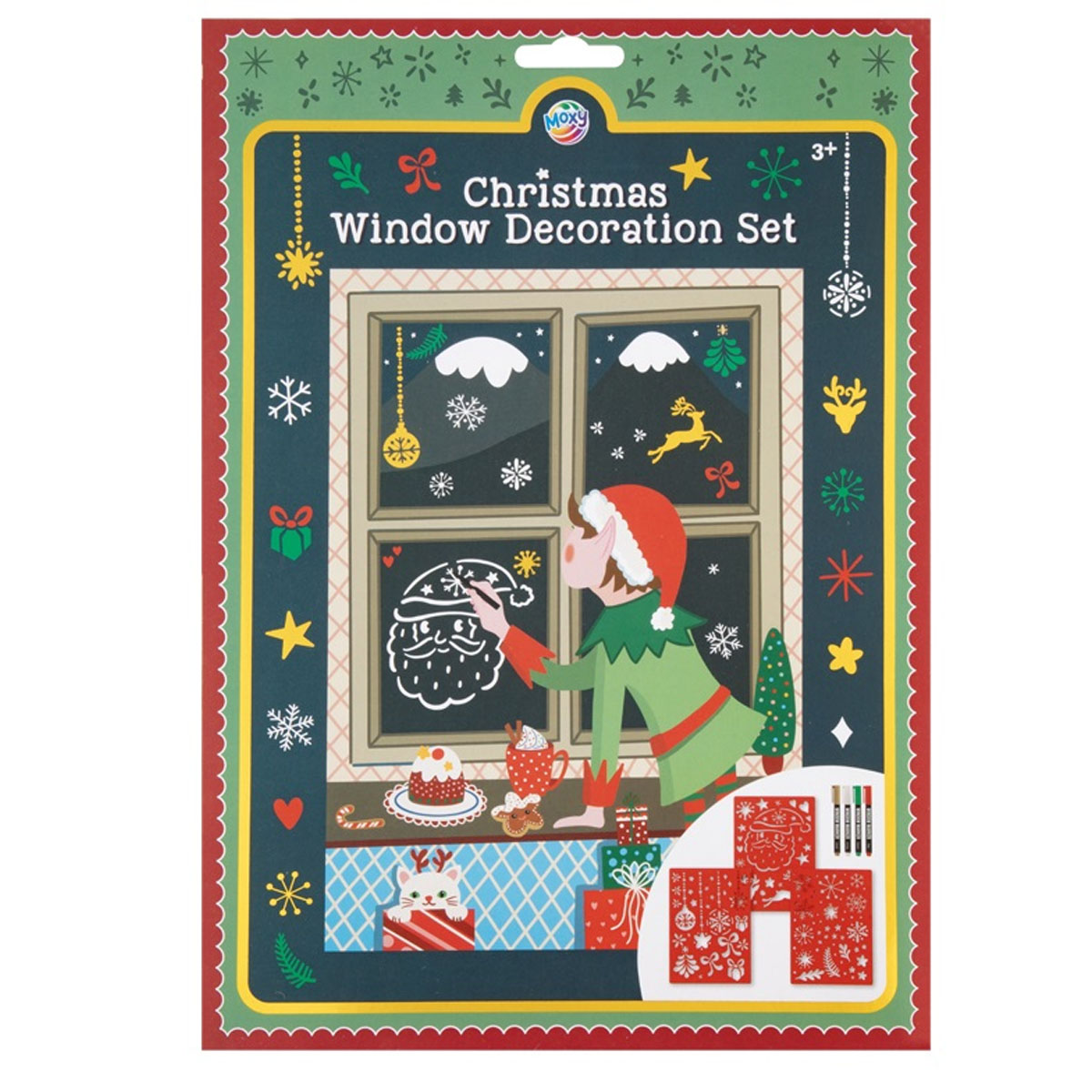 Weihnachts-Fensterdekoration-Set, A4, 3 Schablonen und vier Stifte.