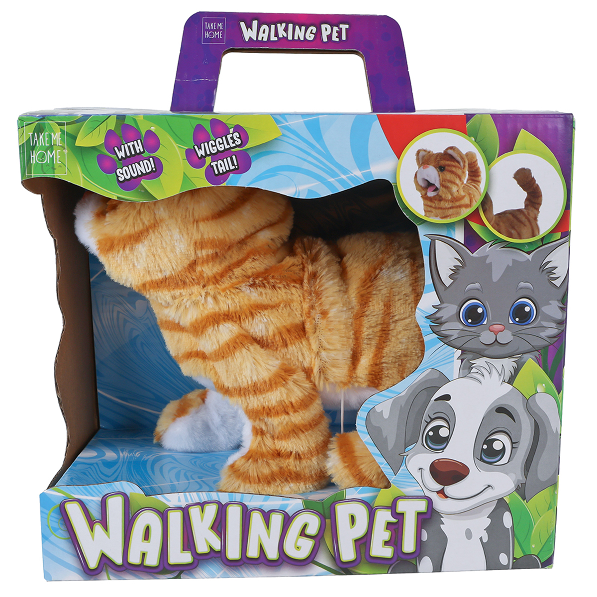 B/O Chat brun 21cm, avec diverses fonctions, les piles ne sont pas inclus.