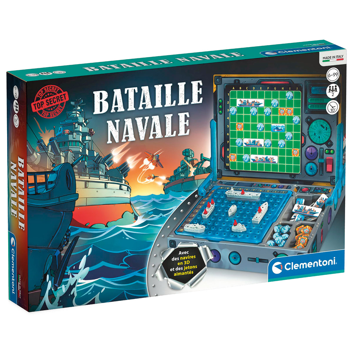 Bataille Navale FR. La bataille navale est un jeu de logique qui peut donner lieu à des combats épiques en pleine mer! Contient deux plateaux où positionner ses navires, deux écrans magnétiques, les navires de guerre et les jetons magnétiques pour marquer les tirs. Chaque joueur place ses navires sur le plateau sans laisser son adversaire les voir. Chacun son tour, chaque joueur essaie de deviner la position exacte des navires adverses pour les couler. Un jeu classique et stratégique qui passionnera les petits comme les grands.