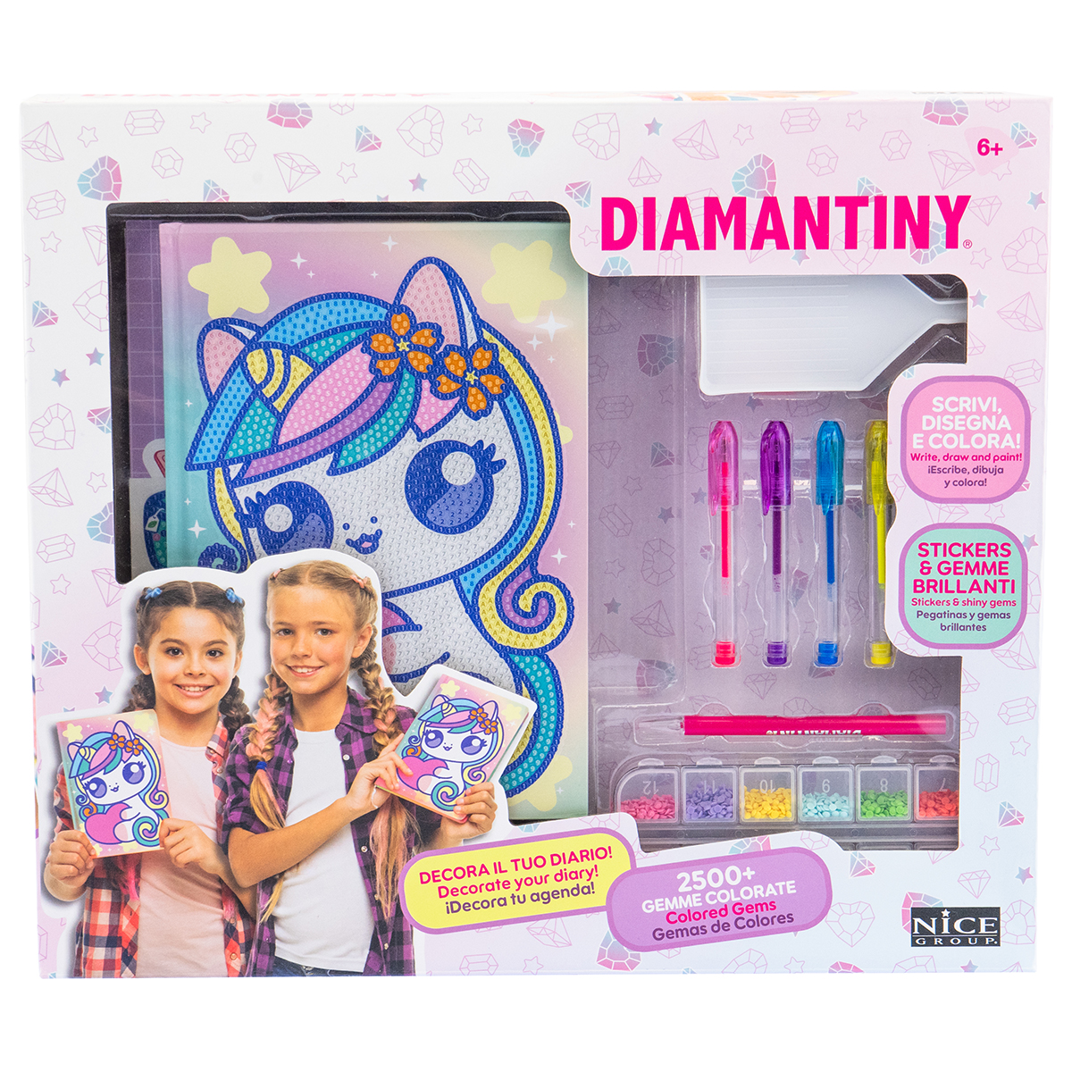 Diamantiny kawaii journal intime licorne avec couverture à décorer avec des pierres précieuses. Contient: journal, pierres précieuses, stylo à pierre, plateau et cire, 4 stylos de couleur, autocollants et stickers à décorer avec des pierres précieuses.