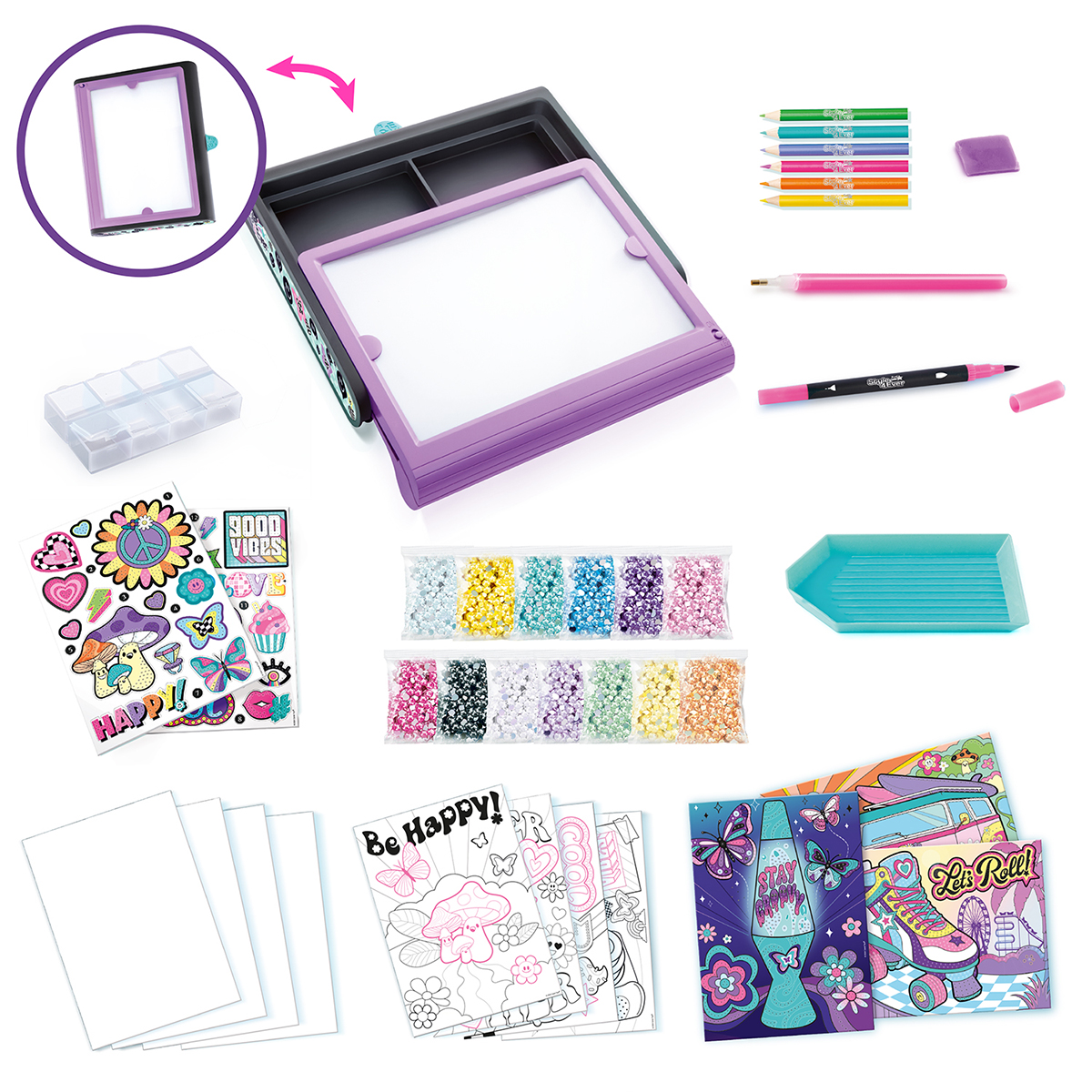 Ce coffret lumineux 3 en 1 est idéal pour réaliser des créations esquissées ou diamantées ! Tu peux reproduire et dessiner avec le tableau lumineux. Créer tes autocollants diamantés ou faire des posters avec les 2 techniques ! Facile à transporter, range tous tes accessoires à l'intérieur.