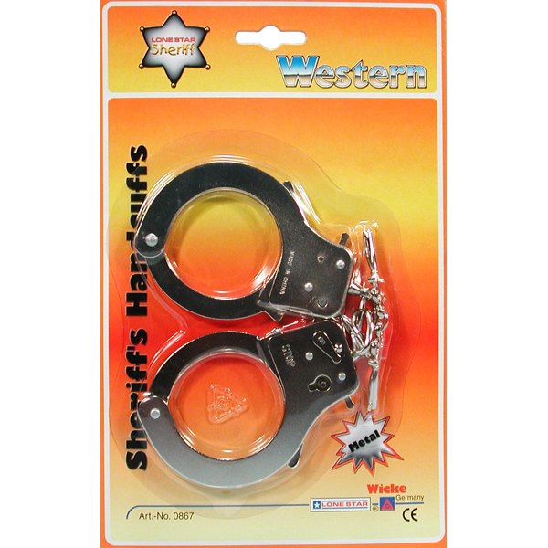 Menottes, en métal, avec 2 clefs, sur carte blister