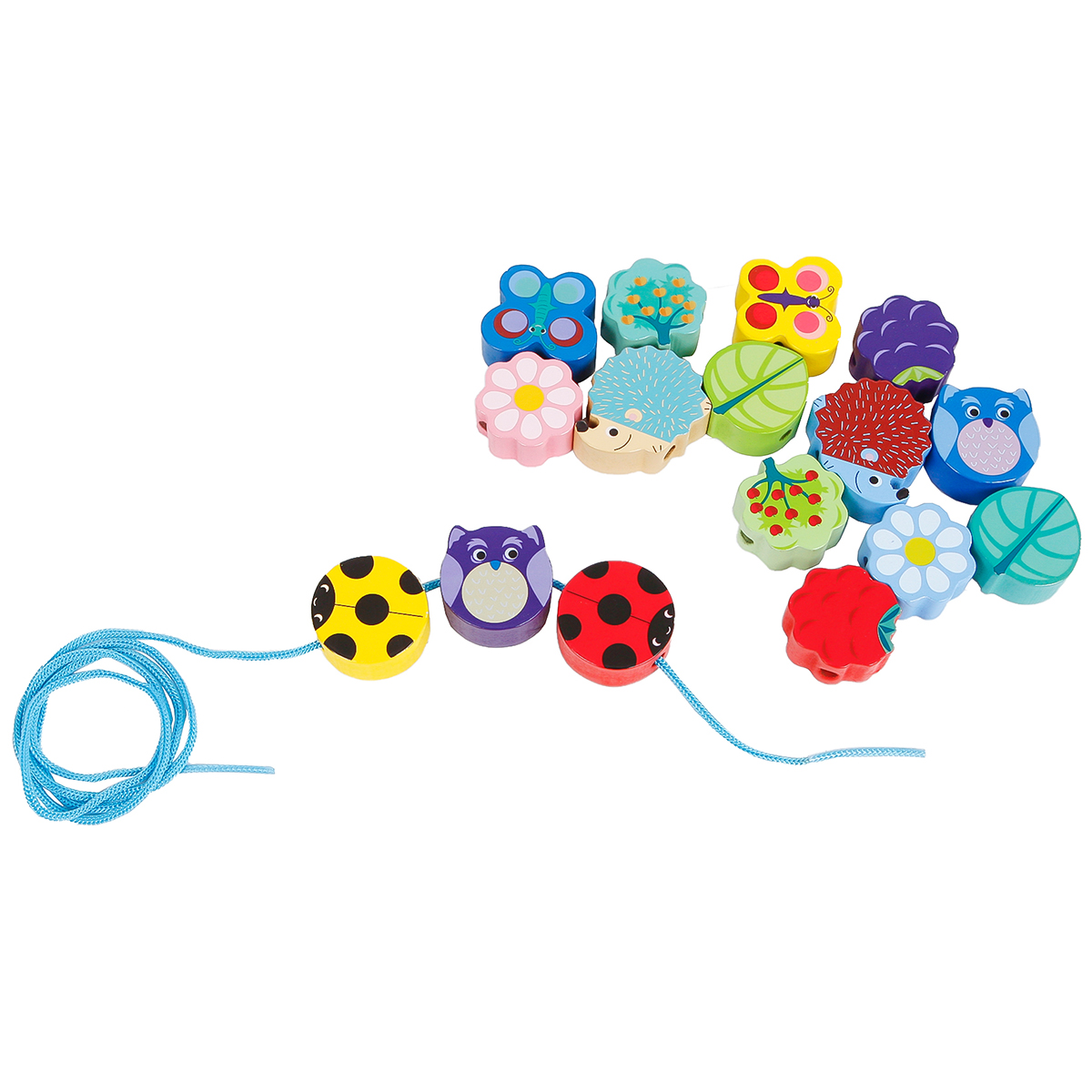 Il est tout simplement soulever ces perles colorées en bois avec de grands trous dans la grosse corde. Ainsi, même les petits enfants font déjà des chaînes belles. Le couvercle est muni d'une poignée et vient livré en couleurs variées.