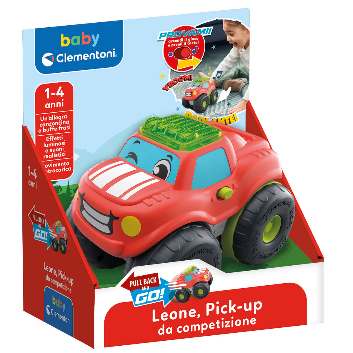 Un Pick up a retrocarica dal design original ed accattivante per sviluppare il movimento e la percezione spaziale! Il pulsante interattivo attiva effetti sonori realistici, luci e canzoncine a tema. Le grandi ruote rendono la macchina unica e veloce, incoraggiando il movimento del bambino e la percezione dello spazio intorno a lui.