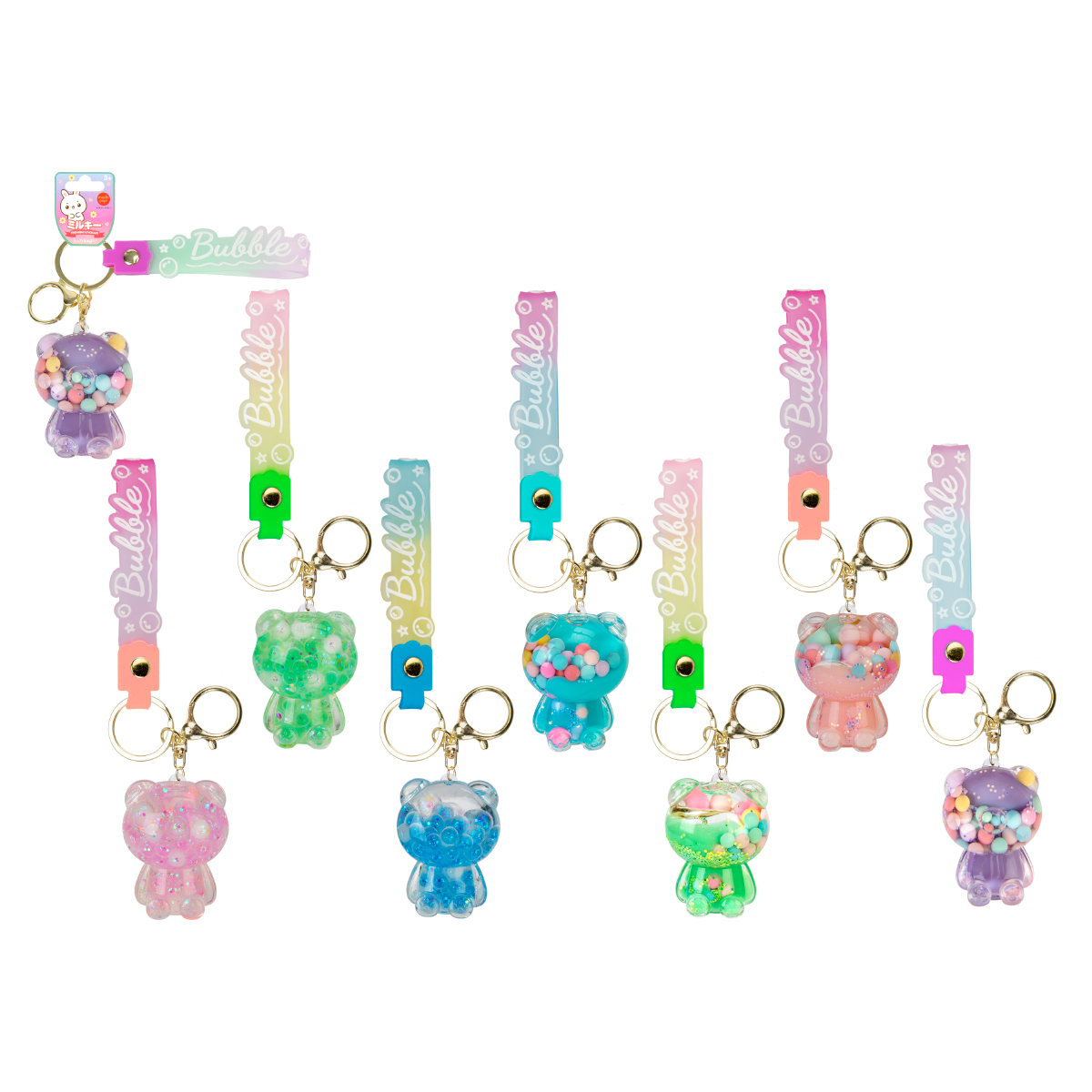 Porte-clés en acrylique avec liquide et boucle, 7-fois assortis