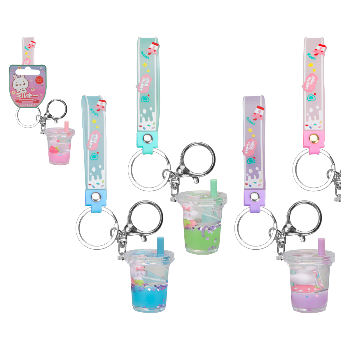 Porte-clés avec breloque en acrylique, liquide et ruban, 4-fois assortis