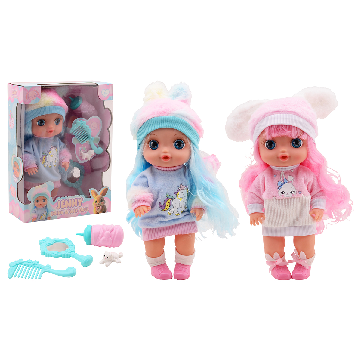 Poupée 30cm avec des yeux grandes et avec accessoires 2-fois assortis.