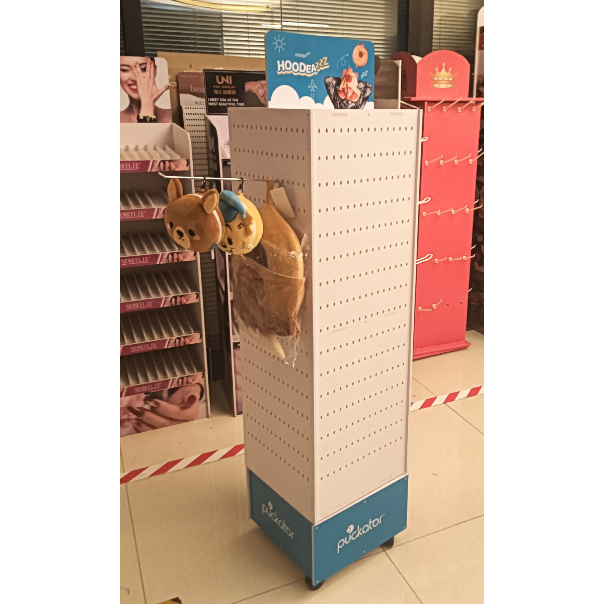 Présentoir pour coussins de voyage avec 40 crochets pour un agencement personnalisé.
