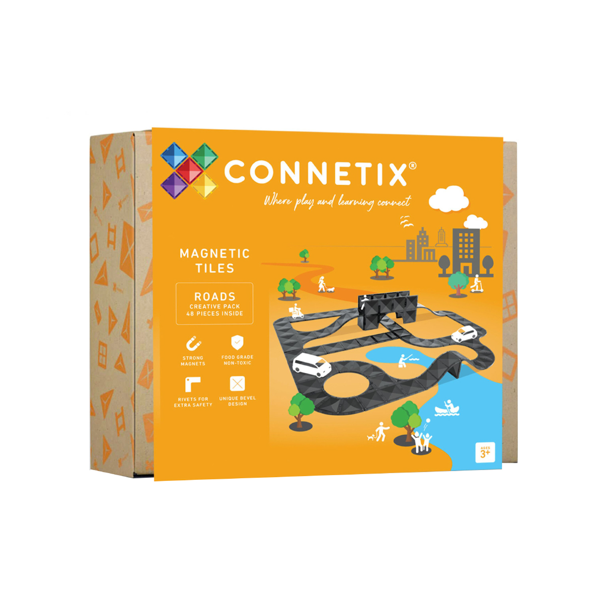 Avec le coffret CONNETIX de 48 pièces Circulation et Créativité, jeu et architecture s'unissent pour une expérience passionnante. Ce coffret comprend une variété de blocs de construction magnétiques noirs élégants, soigneusement conçus! quarts de cercle, arcs, intersections et rampes. Ces blocs permettent aux enfants de construire des routes, des circuits, des skateparks, des villes et bien plus encore! Le noir des blocs accentue l'impact visuel des routes, des rampes et des pistes d'atterrissage, tandis que l'absence de lignes blanches et de marquages ??au sol préserve la liberté créative sans limites, caractéristique des produits CONNETIX. Les enfants peuvent ainsi combiner les blocs à leur guise et créer leurs propres constructions imaginatives.