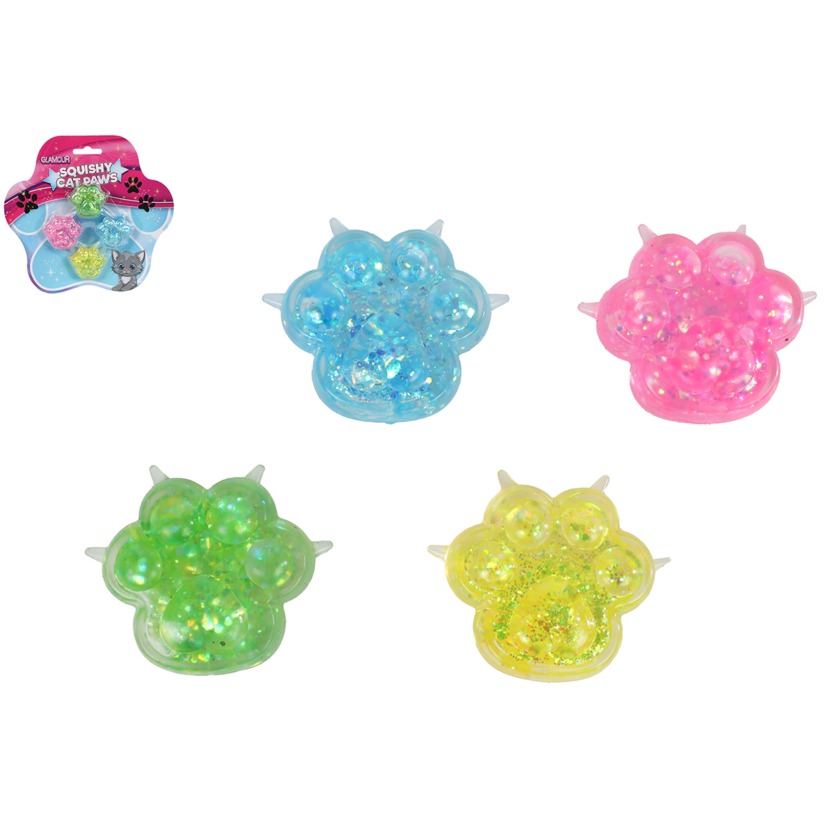 Squishy 4 pates de chat avec glitter.