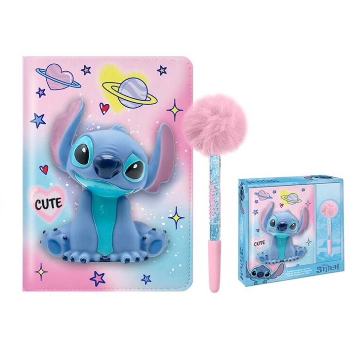 Stitch bloc note Squishy Set avec stylo pompom.
