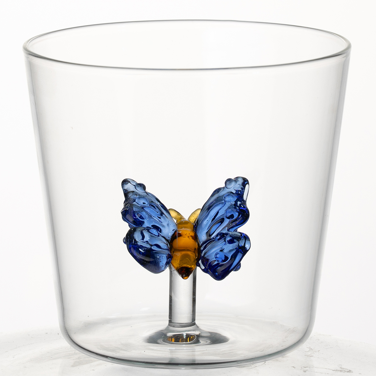 Ce verre est fabriqué en verre borosilicate de haute qualité, réputé pour sa clarté, sa robustesse et sa résistance aux variations de température. Il est ainsi aussi durable qu'élégant. Mais son véritable charme réside à l'intérieur. Nichée dans sa forme transparente se cache une sculpture en verre ludique, minutieusement réalisée à la main, qui ajoute une touche de magie à chaque gorgée. Ce détail raffiné transforme la dégustation en un moment de pur plaisir.