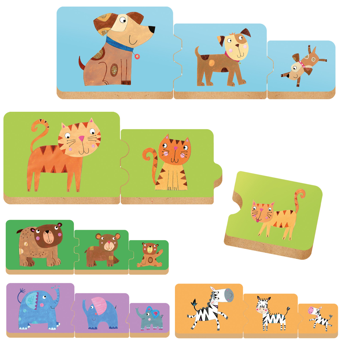 Logique et suites pour les tout-petits. Quel est le plus grand animal? Et le plus petit? Avec ces blocs de construction et connecteurs en bois robustes, les enfants développent leur logique et leur motricité fine tout en découvrant les animaux et leurs familles. Ils apprennent les suites, exercent leur raisonnement logique, développent leur motricité fine et apprennent à reconnaître et classer les animaux. Intelligence principale: logico-mathématique. Autres intelligences: kinesthésique et naturaliste. Contenu: 15 blocs de construction en bois.